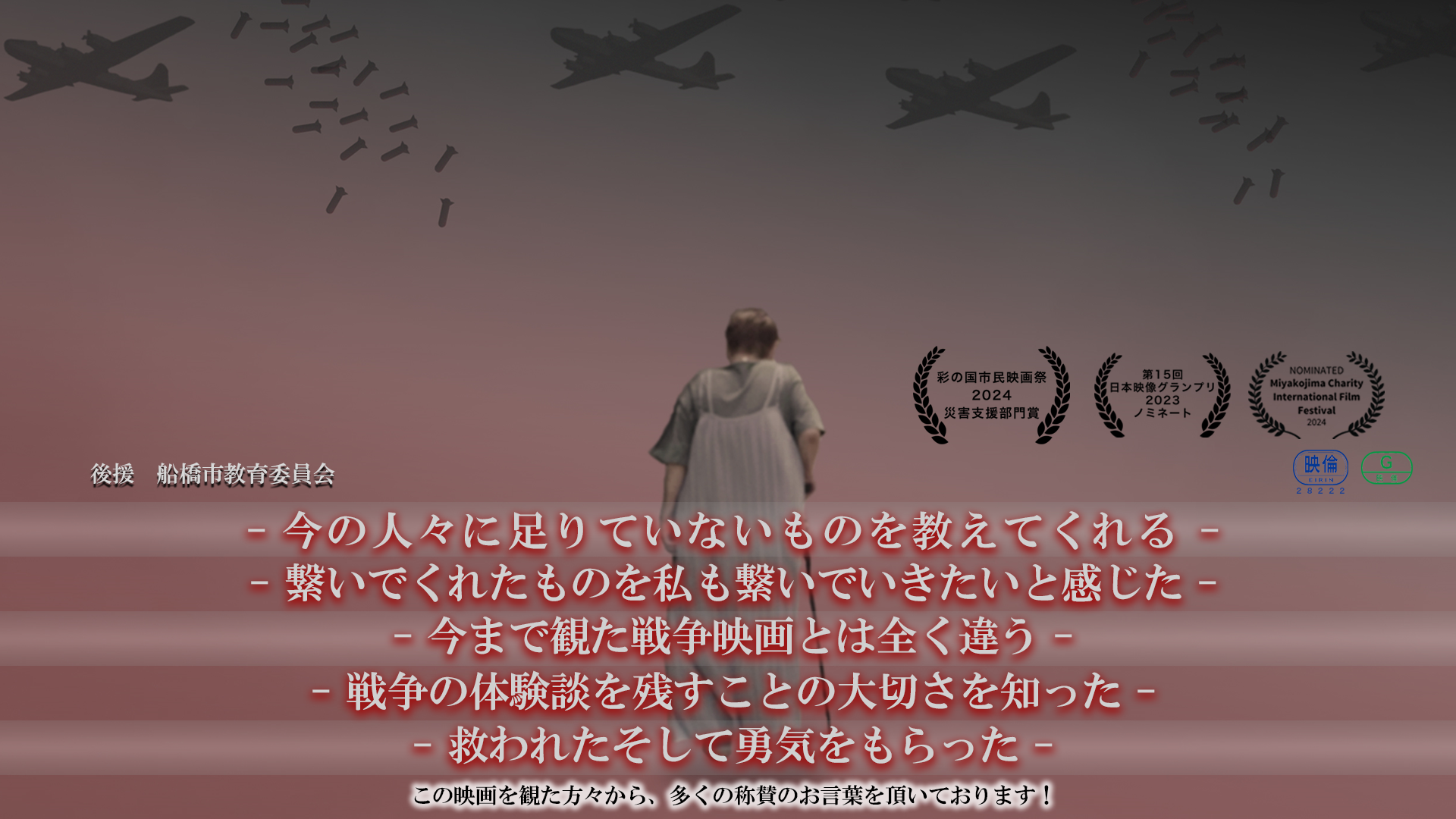 だから、二度と同じ過ちを繰り返さないためにも、この映画が少しでも多くの人に届き、戦争について改めて考えたり、いまの若者や子どもたちに戦争の恐ろしさを伝えるきっかけになることを願っています。